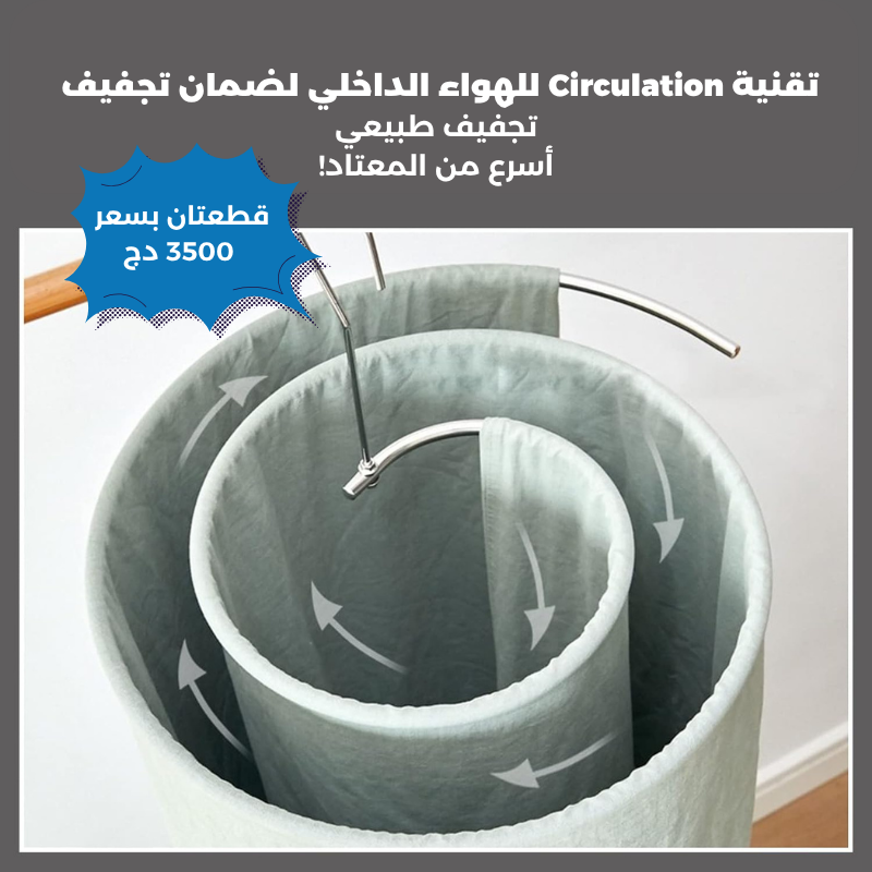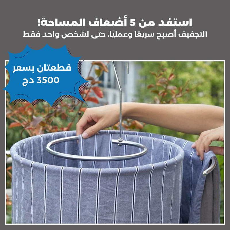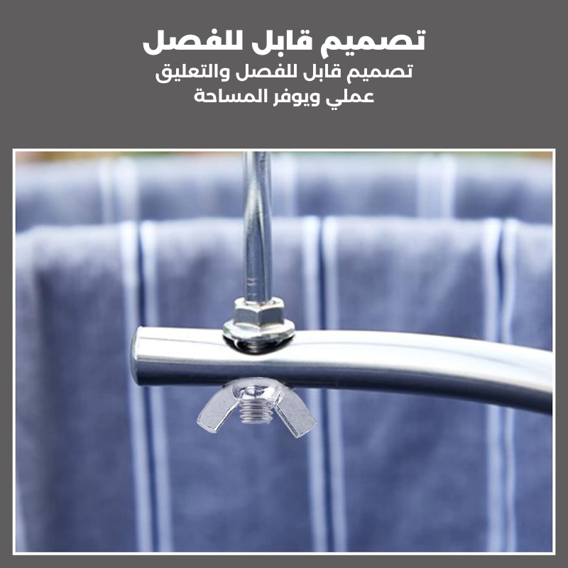 يمكنك تعليقه في الشرفة، الحمّام، أو حتى داخل الغرفة. مثالي لتجفيف الأغطية، البطانيات، الستائر، وحتى الملابس الطويلة.
