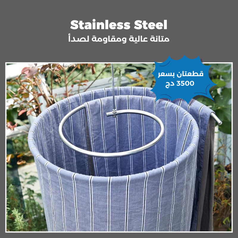حامل التجفيف الحلزوني مصنوع من فولاذ مقاوم للصدأ، خفيف لكن متين، يتحمّل الوزن دون ما يتعوّج. تصميمه الحلزوني يسمح بمرور الهواء من كل الجهات لتجفيف أسرع ومن غير رائحة رطوبة.